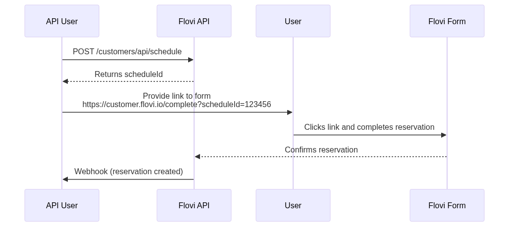 This guide outlines how to integrate your service with the Flovi API to enable users to schedule and complete reservations via a Flovi-hosted form, with webhook notifications sent back to your system.